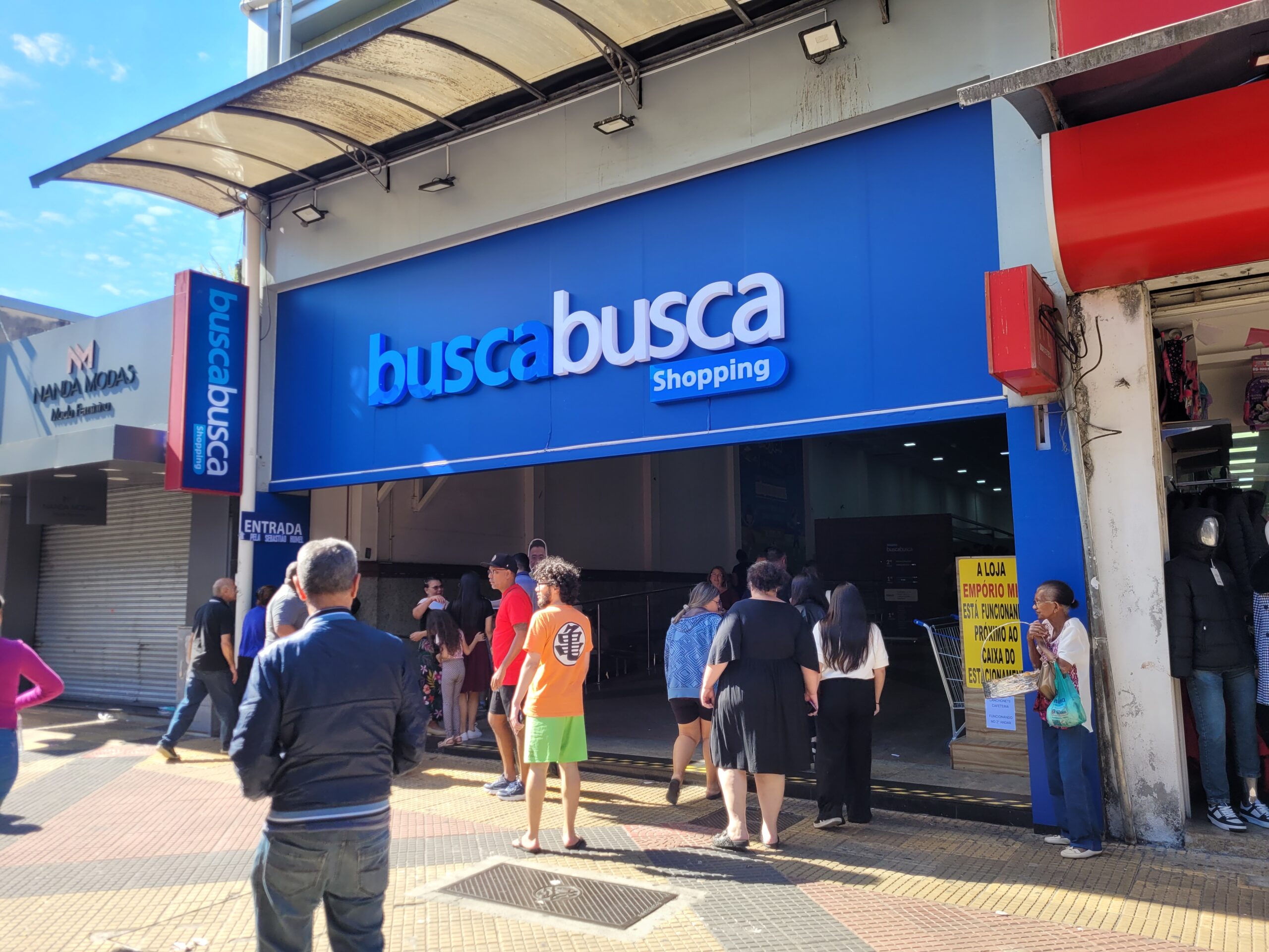 poucos dias na mesma região. É 13 de julho de 2025 e uma loja Busca Busca foi inaugurada há quatro dias.